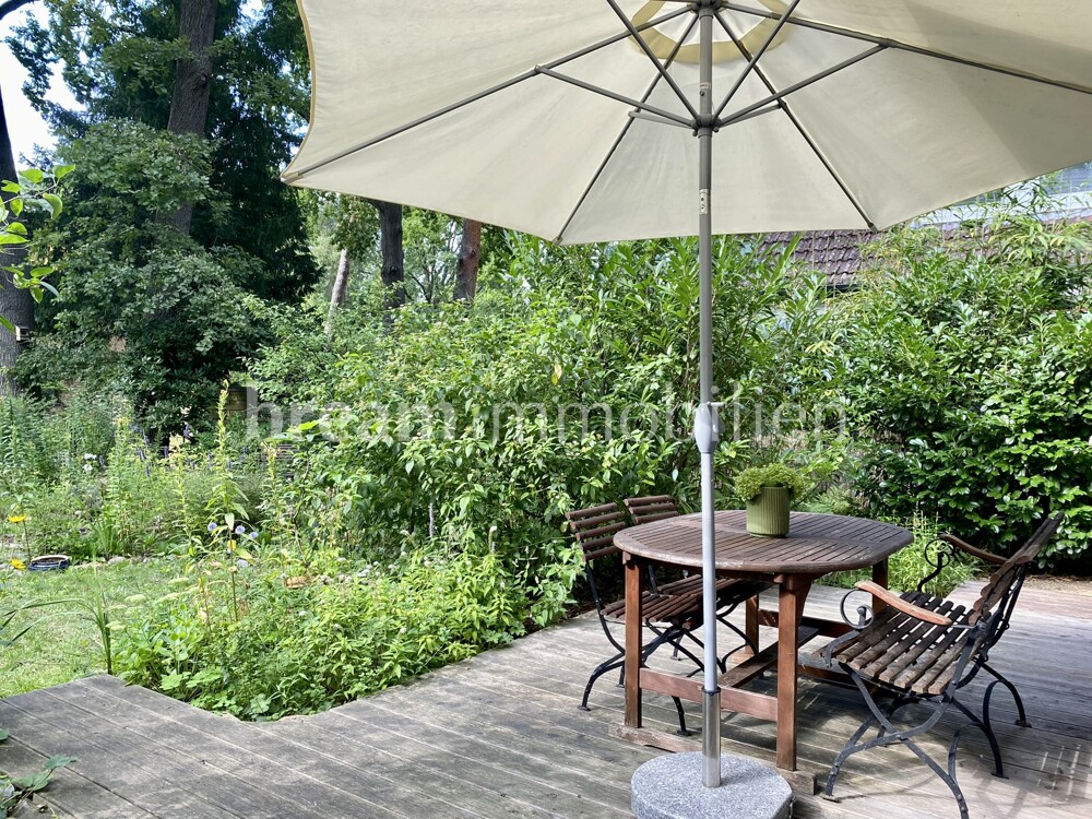 A solid wood staircase leads to the attic. This is open plan and the first thing that strikes you when you enter is the cosy, open roof space with access to the covered balcony offering a wonderful view of the garden. The floor is complemented by a cosy bedroom with a new ensuite bathroom with natural light and a bathtub, as well as a walk-in wardrobe.