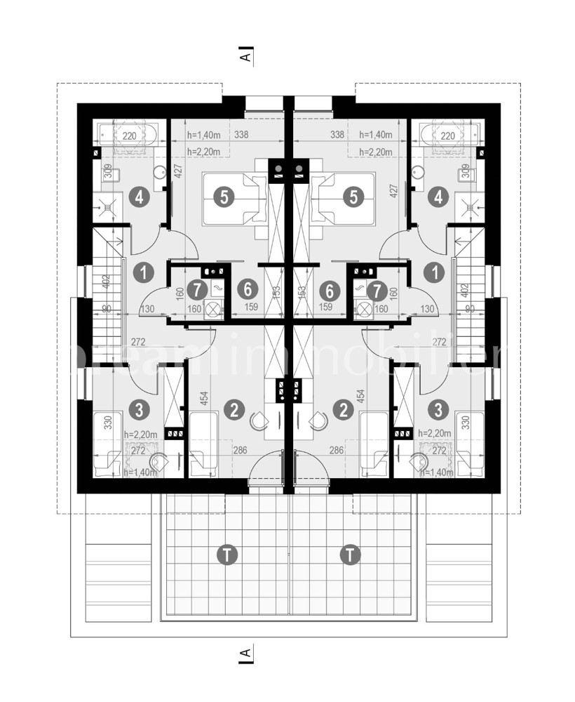 Welcome to your new dream home! Let us stroll together through the floors of this beautiful property, which combines functionality with style. On the first floor, you enter through an inviting entrance door into a bright hallway, which gives the first impression of spaciousness and light. Here you have enough space for a checkroom to store your jackets and shoes and those of your guests neatly. You can also enter the hallway directly from the garage. The open-plan living area is the heart of the house. Generous windows provide a pleasant daylight atmosphere, with space for a cozy sofa and coffee table, perfect for relaxing evenings with family and friends. The dining area is seamlessly connected to the living area and offers space for a large dining table. Here you can celebrate unforgettable meals and parties with your loved ones. The modern kitchen is functional and elegant, equipped with high-quality appliances. The integrated pantry is also very practical. Enjoy the benefits of an open-plan design that allows you to chat with your guests while cooking. A small guest WC completes your first floor. A beautiful, inviting, single-flight staircase takes you to the upper floor of your home. There you will find a spacious, bright bedroom. The private retreat offers you space for a large bed and personal design elements. You can enjoy the benefits of a separate dressing room. Here you can relax after a long day. In another spacious room, ideal for children or as a guest room, a French window with access to the large balcony creates a bright, friendly ambience. The bathroom is fitted with high-quality fittings and offers both a shower and a bathtub - perfect for a relaxing spa day at home. A second children's room or an office, as well as a utility room complete your living area on the upper floor. This home not only offers you stylish living, but also the flexibility to meet the needs of a modern family. The open plan design encourages togetherness and creates a warm, inviting atmosphere. Be inspired by this unique home. The house complies with an energy efficiency house standard 40. The extended offer would include floor slab, connections, building rights, an energy certificate will be provided.