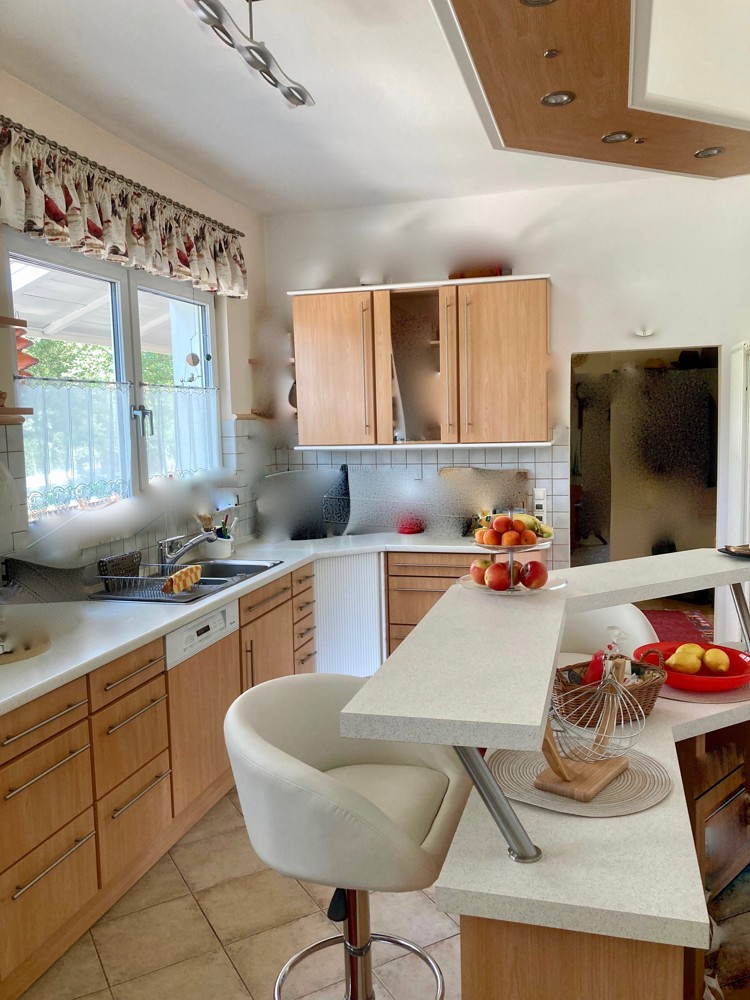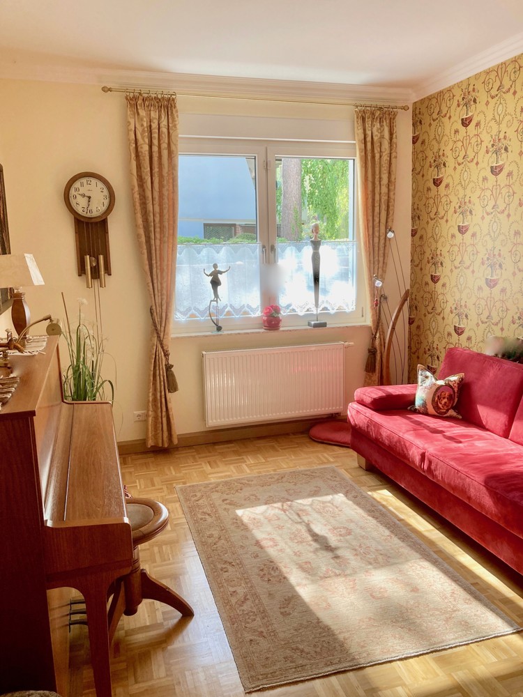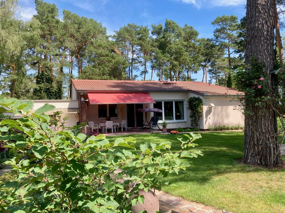 Do you love the peace, the nature, the water? Then you are right here, because this idyllically situated, comfortable house with Italian flair is looking for a new owner! On offer is a lovingly renovated bungalow from 1964 with a partial basement. The house is located in a quiet street, on a dreamlike 789m2 large plot, with a garage and a garden house. The house was extensively renovated and modernized in 2001 and in 2014 the gable roof was completely renewed. The living space on the first floor is about 115m2. Due to the practical, partly open layout and approx. 3m high ceilings, the house appears spacious. Thoroughly renovated was also the approx. 60m2 large basement. Here the rooms are equipped with heating and mostly with windows. Guests will find there a cozy daylight room with adjoining shower room. From the garage, which is also heated, you have convenient access to the house and garden. The garden is beautifully landscaped and easy to maintain, also impresses with the old trees. The house is suitable for families as well as for people who want to live comfortably in harmony with nature in old age. Potential of the property is also in the possibility of expansion, because the house could also be enlarged by a full floor.