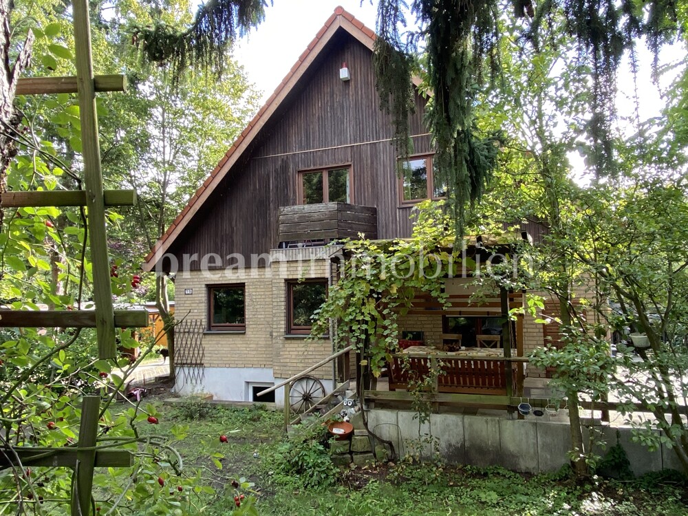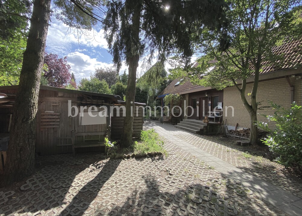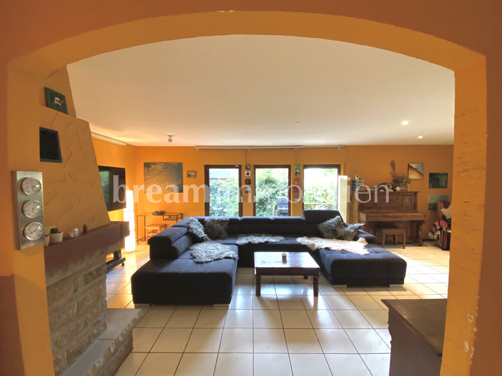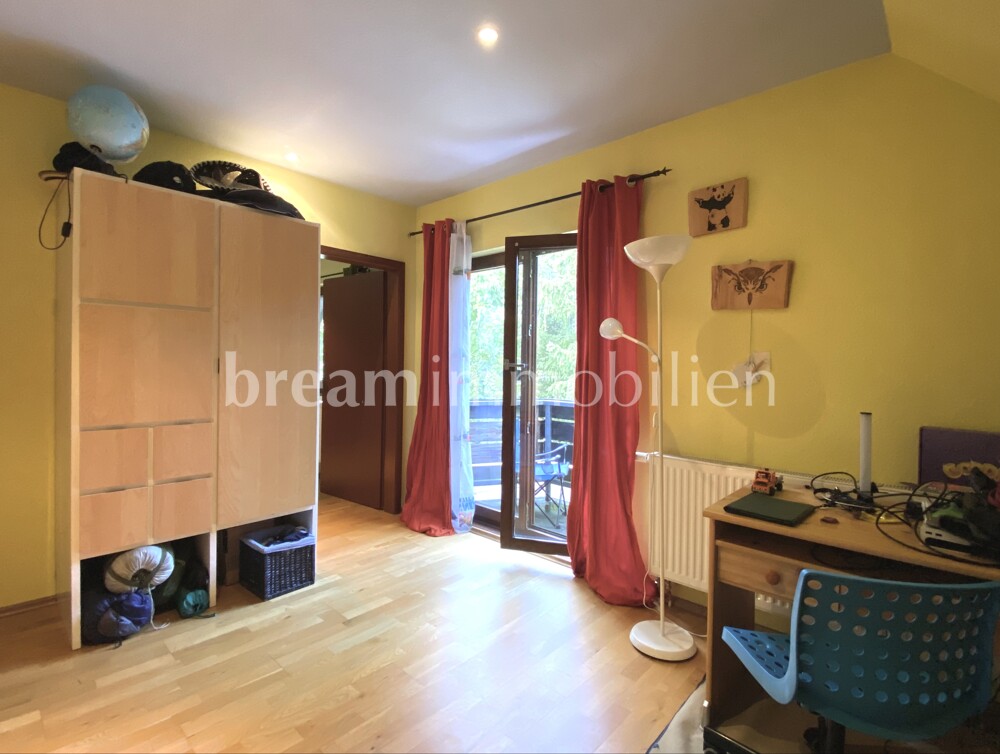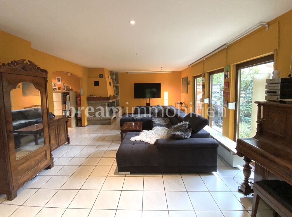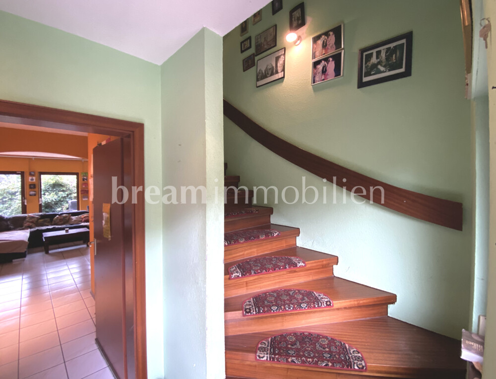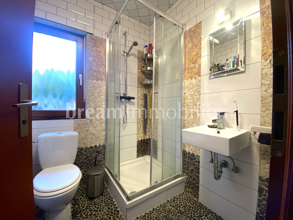 This spacious semi-detached house was built in 1992 by the Kampa company in a half-timbered frame construction and is fully insulated in keeping with the year of construction. The house has a full basement and offers plenty of space for the whole family on two floors. The open-plan layout on the first floor with the small bay window in the dining room next to the kitchen gives your living area a friendly and airy feel. A wood-burning stove in the inviting, spacious and light-flooded living room creates a cozy atmosphere. On the first floor, you will also find a guest shower room, a practical storage room and a hallway that leads to the cellar as well as the solid wooden staircase to the upper floor. There you will find three beautiful bedrooms as well as a spacious daylight bathroom with shower, large bathtub and a storage room. The loft also offers you space for guests, serves as a retreat or as a play area for your children. In addition to separate external access and the utility room, your basement has three further rooms for individual use and configuration. A small balcony on the upper floor and a spacious, partially covered terrace on the first floor open up your living space to the garden. There you can enjoy the peace and quiet of your home. Your house has design potential and can certainly be renovated in one place or another. It is ideal for a family looking for a quiet, comfortable home in a good, central location, close to the water, where others want to spend their weekends or leisure time.
