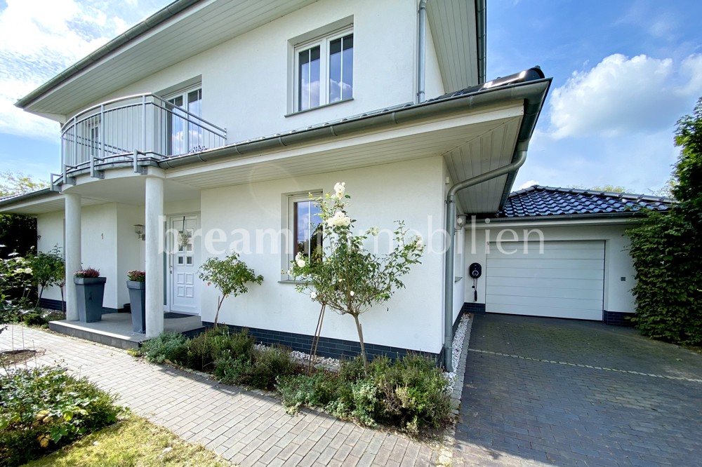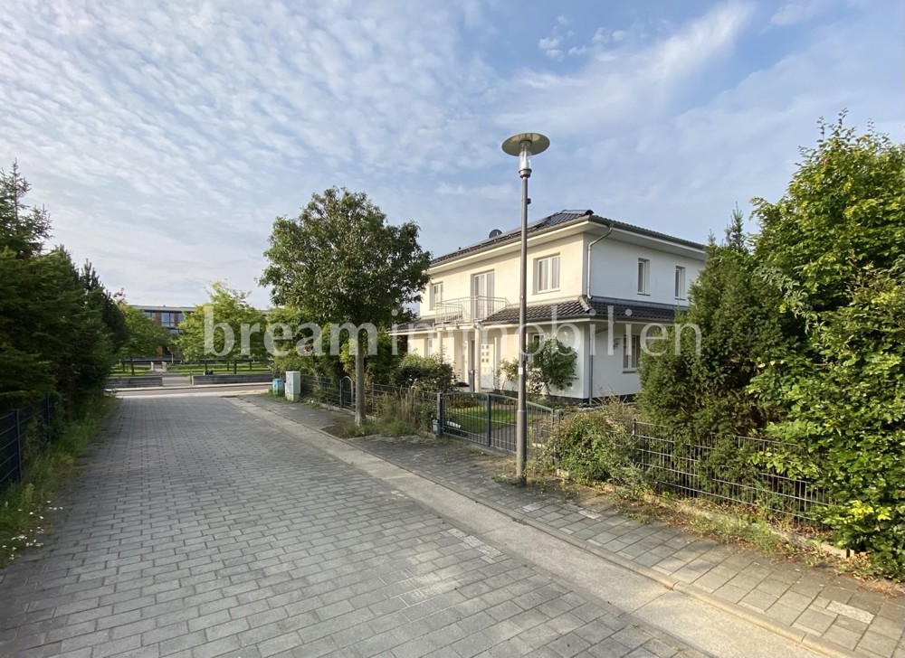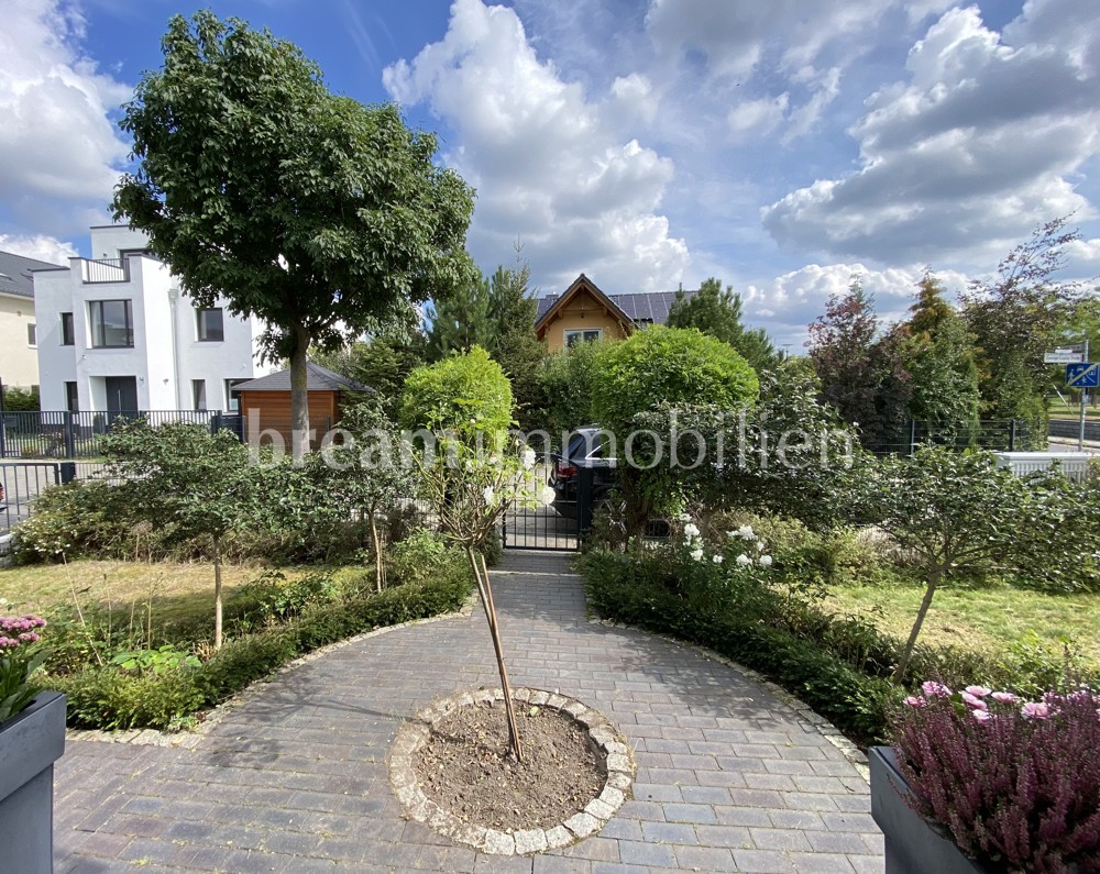 This is a high-quality, well-designed, comfortable and contemporary detached house for immediate occupation. Built around 15 years ago, the home is in immaculate condition and impresses potential buyers with its construction quality and energy efficiency. In 2021, a solar system with storage was retrofitted on 3 sides of the hipped roof, which, according to experience, can cover around 75% of the house's electrical energy requirements. The spacious house in a staggered storey design impresses with its successful floor plan. The spacious rooms with a very pleasant ceiling height each have 2 windows. All windows are fitted with electric shutters. A large bathroom on the upper floor and a guest bathroom on the first floor, as well as 2 large balconies and a spacious terrace complete the picture. You will find the perfect home on a tastefully landscaped plot in a quiet residential street. Not only the quality of the property, but also its location is very appealing. In the immediate vicinity you will find attractive facilities for your children: the renowned Hans-Carossa-Gymnasium is located on the opposite side of an adjacent park strip with well-maintained play structures, a skate course and a sports field nearby, as well as other facilities for younger children. The Mary Poppins elementary school and a daycare center are also within easy, safe and convenient walking distance. Right on the doorstep, you can enjoy wonderful views of the Gatower Heide and the opportunity to take nature walks without having to do without the excellent infrastructure within walking distance, such as bus stops and good shopping facilities. Your family lives here in a local recreation area: Gross-Glienicker See, Gatow Golf Club, Sacrower See, Kladower Hafen with beer gardens are all within easy reach on foot or by bike. The house does not have a basement. However, thanks to the well thought-out floor plan (various storage rooms) and a garage (with workshop/garden storage room), you will find plenty of storage space.