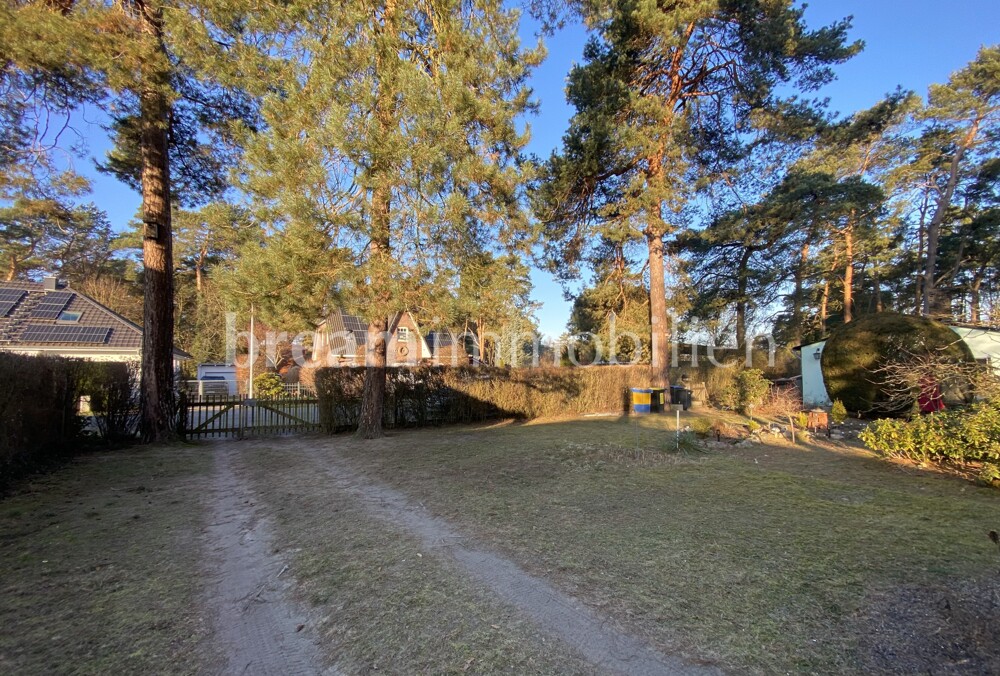 The plot on offer with an attractive tree population is located in Groß Glienicke, one of the most sought-after residential areas in the Potsdam region, in the immediate vicinity of Berlin. You live in a local recreation area, close to the Brandenburg and Berlin lakes, in a well-maintained, charming residential estate close to nature. The location impresses with its excellent combination of high quality of living and quality of life, a natural environment and optimal infrastructural connections to two conurbations. The plot, which is connected to the road, is in a particularly quiet location in front of the turning hammer of a cul-de-sac and, at approx. 740 m², offers ideal conditions for a modern tiny house, a bungalow or a spacious detached house with the option of two residential units. The plot has a length of approx. 20 m towards the residential street. In a relaxed neighborhood, you can spend time in the peace and quiet of your own garden or reach nearby places of recreation and relaxation on foot or by bike - such as the wonderful Sakrower See or the Groß Glienicker See. A large forest borders directly on the estate, not far from your property. You live where others seek relaxation. The development plan shows a GRZ of 0.15 and a GFZ of 0.25. You are allowed to build two full storeys, whereby the second storey should correspond to an attic storey in terms of design, but may cover up to 2/3 of the floor area of the lower storey. As we understand it, you can therefore build a residential building with a gross floor area of up to approx. 185 sqm.
