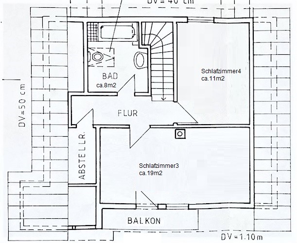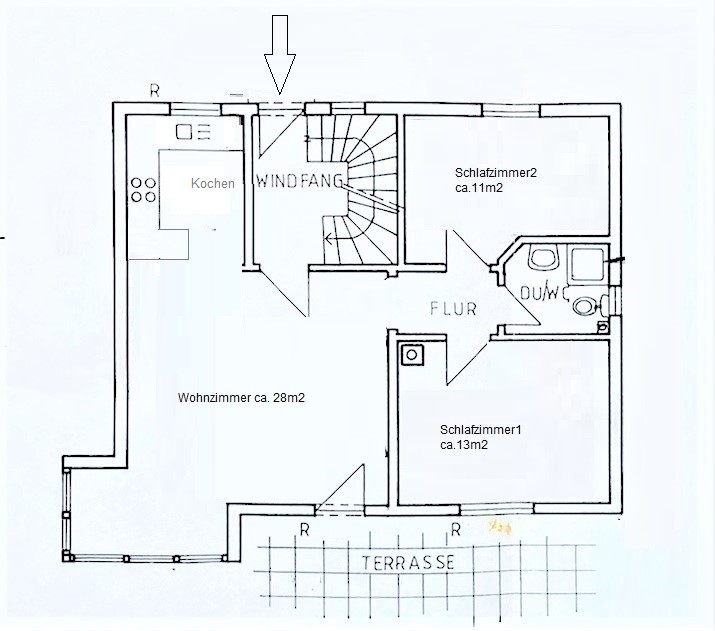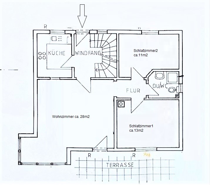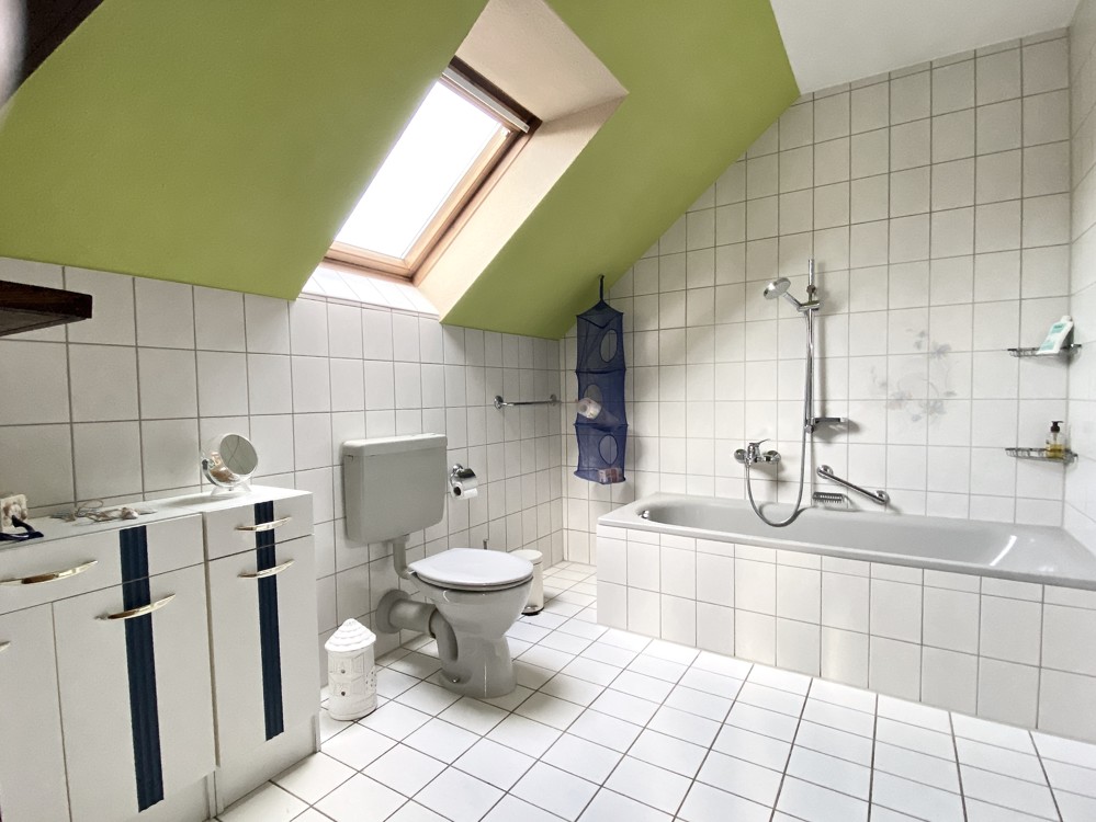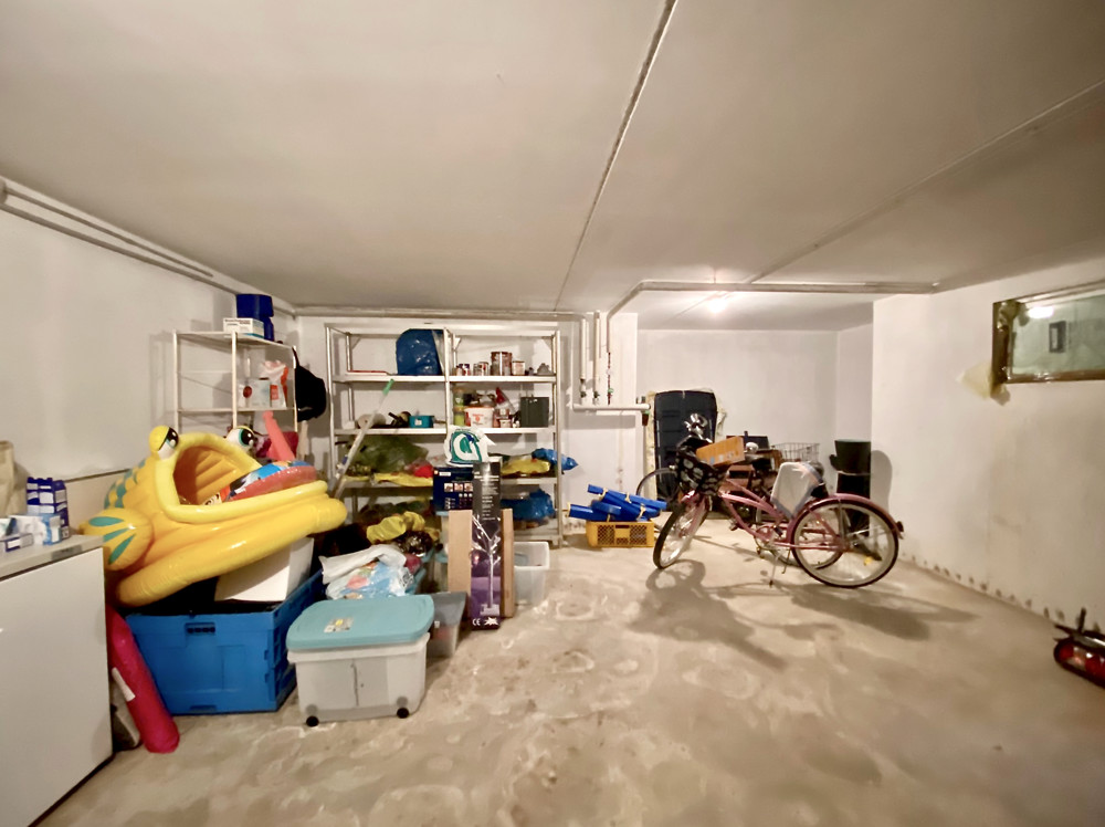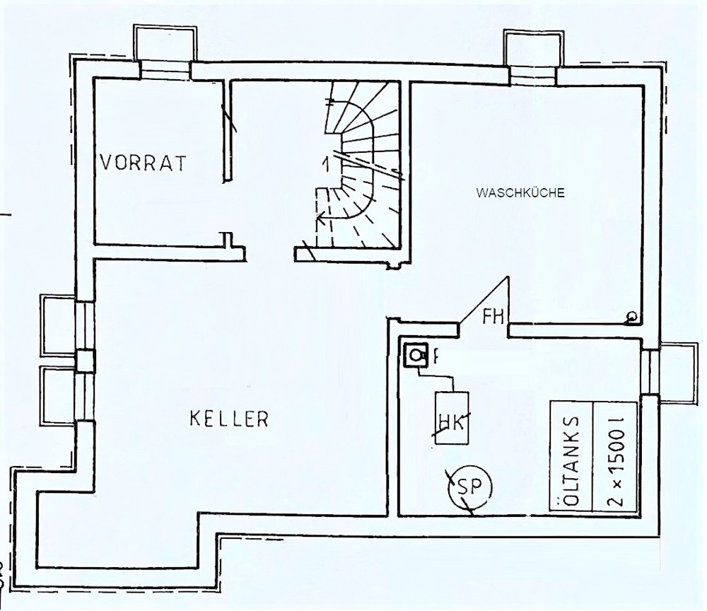 The spacious and dry cellar, which amounts to approx. 60 sqm, offers further storage space and depending upon need also development surface. There is also the oil central heating with tank, which heats the house.