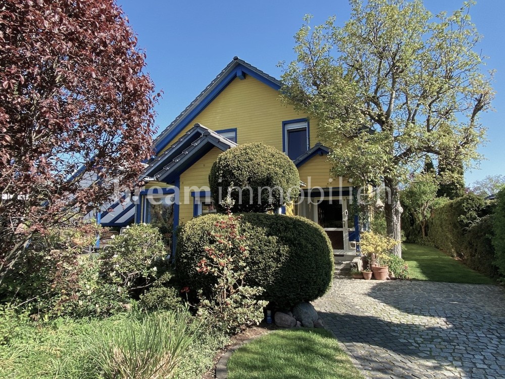 Der Garten verspricht mit mehreren Sitzplätzen, einer Fülle von Pflanzen und einem natürlichen Badeteich viel Erholung und Privatsphäre. Die Einfahrt mit Stellplatz und hochwertigen Holzbauten, zwei Garagen, Schuppen, Hobby-Werkstatt, komplettieren das Gesamtbild.