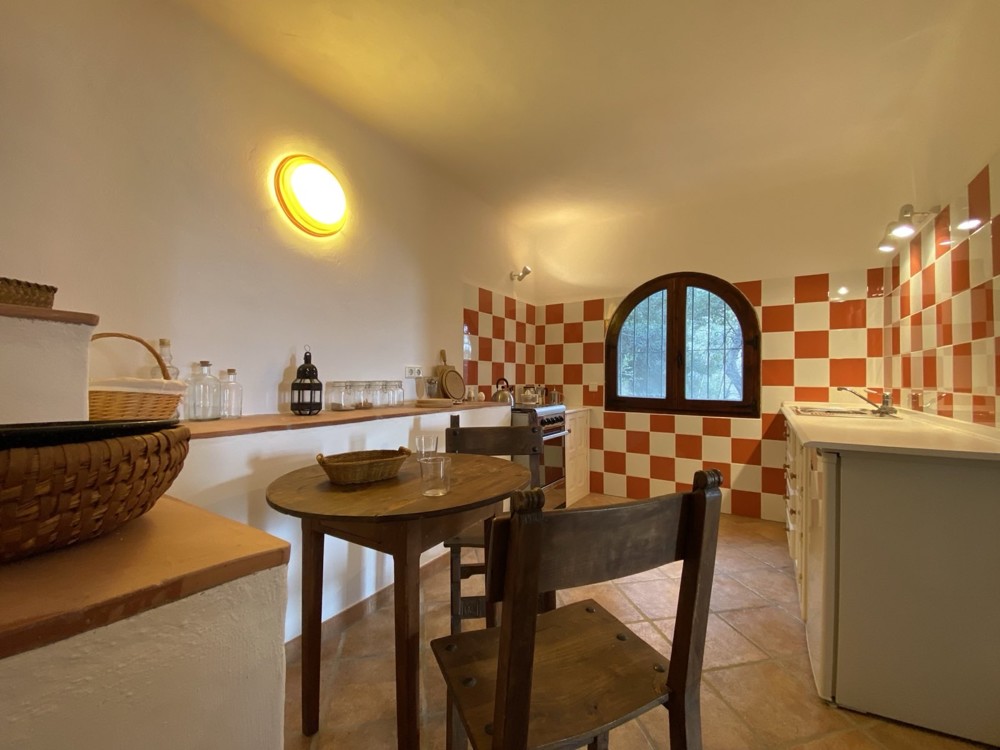 Angrenzend an ein Naturschutzgebiet genießen Sie mit diesem einmaligen Haus den besonderen Vorzug über all dieses frische Grün hinweg einen sehr schönen, weiten Blick auf das Meer zu haben und nur einen einzigen direkten Grundstücksnachbarn. Das ist in dieser Siedlungsform einzigartig. Der weitläufige Garten rundum Ihr Haus, der sich über bis zu vier Ebenen erstreckt, bietet Ihnen durch seinen schönen, alten Bewuchs, die ortstypische Vegetation und seine gelungene Anlage sowohl erholsame, angenehm schattige Plätze, unter den diversen, charaktervollen großen Bäumen, als auch genügend Raum für die Freuden des Sonnenbadens auf den vielen großzügigen, terracotta gefliesten Terrassenebenen. Rund um das Haus entdecken Sie wunderbare, liebevolle Details der Gartengestaltung, die vom künstlerischen Wirken und dem Sinn der Eigentümer für den Umgang mit den Besonderheiten des gewachsenen Ortes und der Natur zeugen. Der große Pool fügt sich ebenso harmonisch ein, wie das kleine, schmucke und sehr praktische Gartenhäuschen und die rückwärtigen, vor Einblicken gut geschützen, naturbelassenen Areale im hinteren Teil des großen Gartens. Das Haus ist geschmackvoll, annähernd im Originalzustand der 1970er Jahre eingerichtet. Die Ausstattung ist einfach und überzeugend. Die solide Bauweise aus dieser Zeit spricht für sich. Selbst bei hohen sommerlichen Temperaturen kann es im Haus noch recht angenehm frisch sein. Ein Kleinod in besonderer Lage mit einer ungewöhnlichen, bezaubernden Gartenanlage, mit regional typischer Bepflanzung, exotischen Akzenten und geschmackvollen Details.