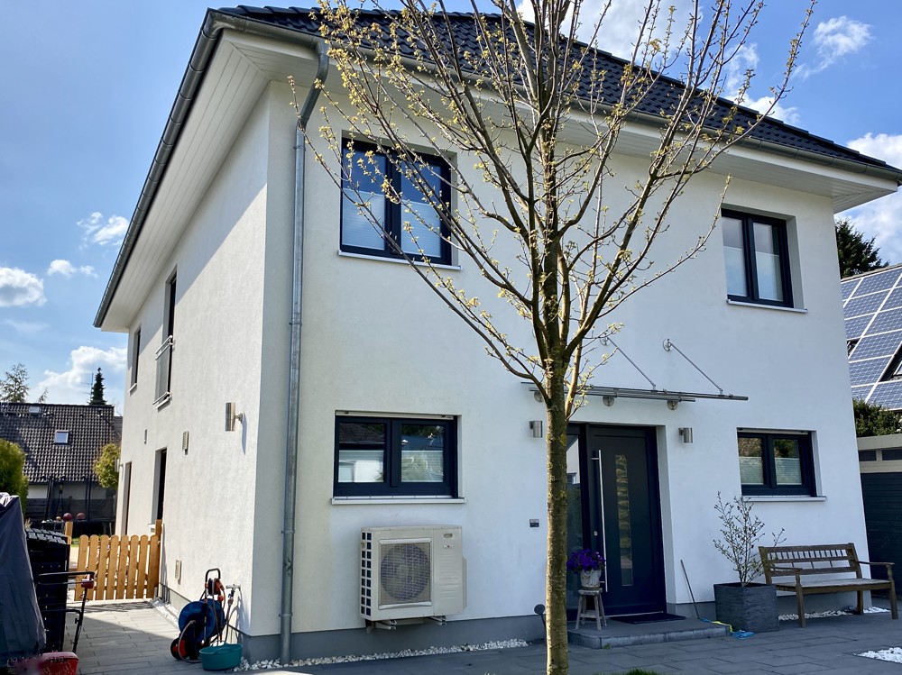 Das Gebäude wurde 2016 als Niedrigenergiehaus auf einem ca. 800m² großen Grundstück massiv erbaut und ist als Eigenheim für eine Familie konzipiert.