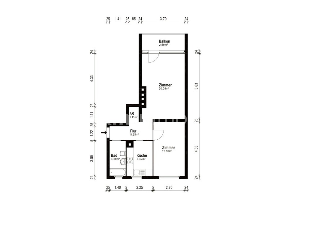 - 52 m² große, bezugsfreie 2-Zimmer Wohnung mit Balkon,