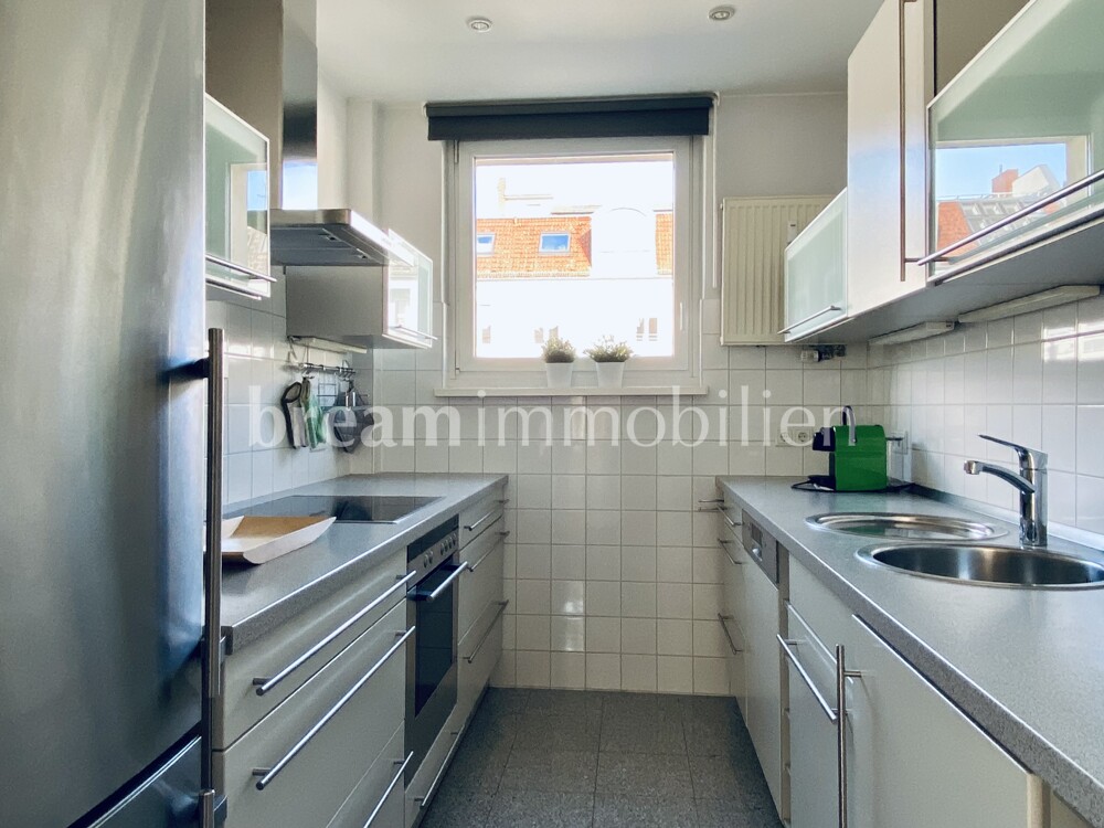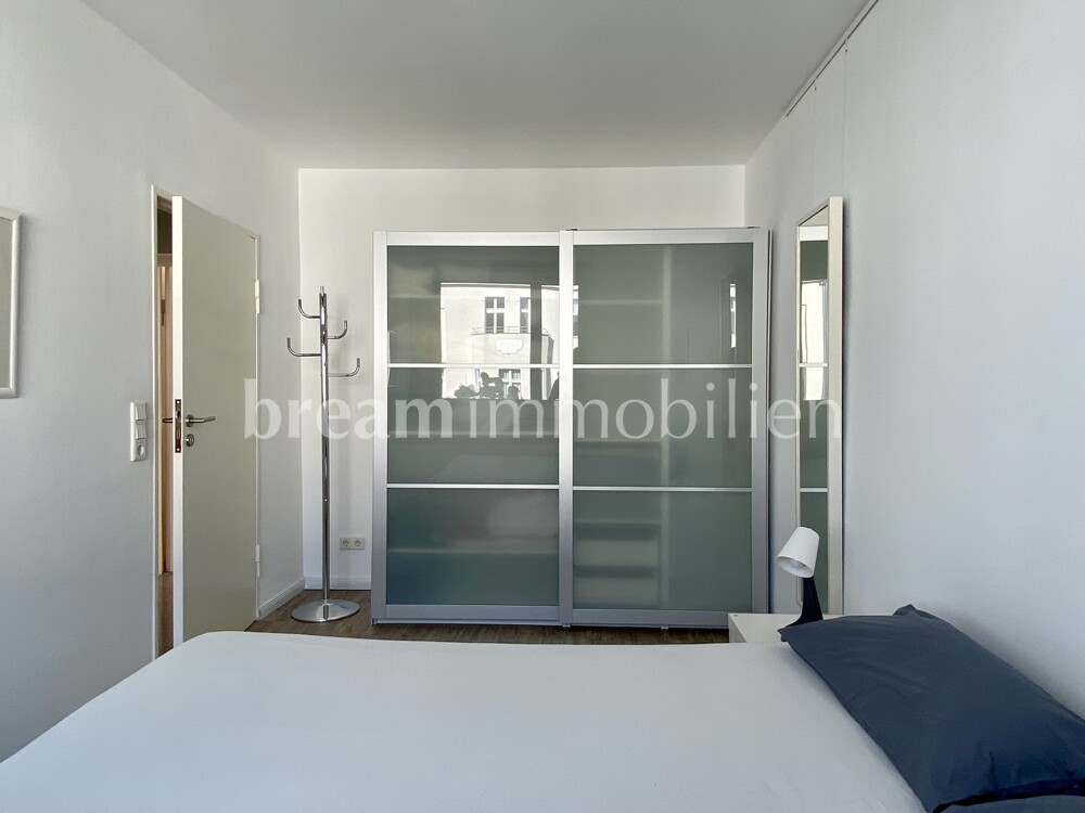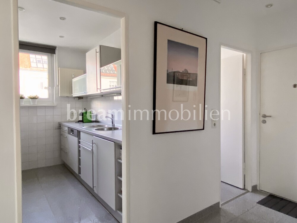 Das geräumige, lichtdurchflutete Wohnzimmer bietet Zugang zum ruhigen Westbalkon, von dem aus man in den grünen Innenhof blickt, dabei herrlich entspannen kann. Die hochwertige Einbauküche wurde mit allen Elektrogeräten und einer Waschmaschine ausgestattet. Das moderne Bad mit Eckbadewanne, Duschmöglichkeit und Fenster lässt keine Wünsche offen. Beim Schlafzimmer ist der große, moderne Kleiderschrank zu betonen. Im Flur sorgt eine praktische Abstellkammer für zusätzlichen Stauraum.
