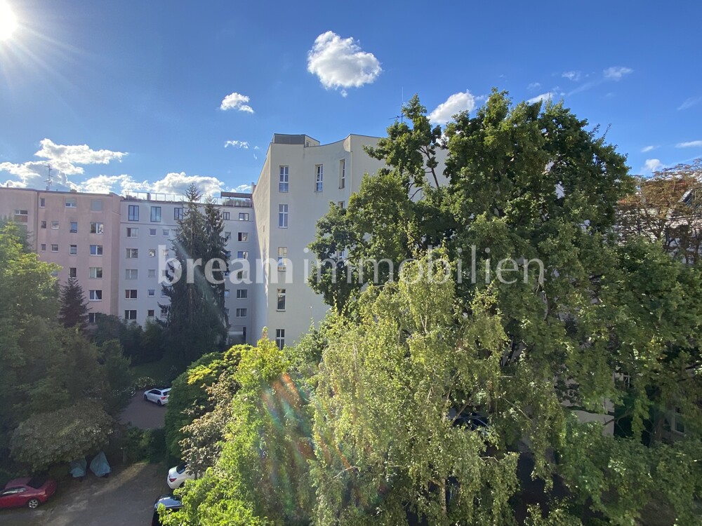 - ruhiger Westbalkon mit Blick in den grünen Innenhof,