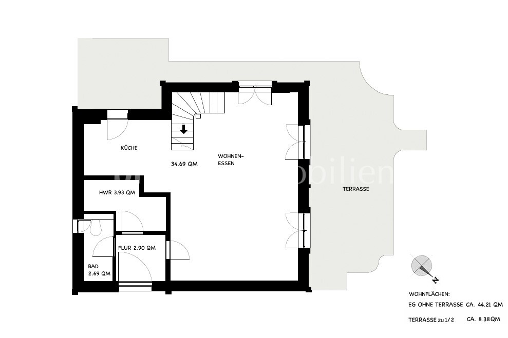 - umlaufende Terrasse beim Wohn- und Küchenbereich nach Süd-West und Nord-West,