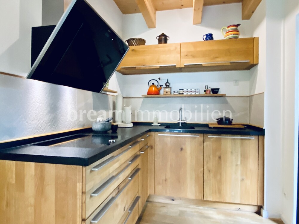 Im Inneren sorgen sichtbare Holzbalken im Erd- und Obergeschoss für eine warme, wohnliche Atmosphäre. Nachhaltigkeit bei der Materialauswahl bei Dämmung (Zellulose und Hanf), Türen, Fenster, Küche (Holz) sowie ein durchgängiger Eichen-Dielenfußboden in den Wohnräumen in Kombination mit moderner Technik wie Fußbodenheizung über Luft-Wärmepumpe, 3-fach Verglasung gewährleisten das ganze Jahr über ein angenehmes Raumklima, exzellente Energiewerte und niedrige Verbrauchskosten.