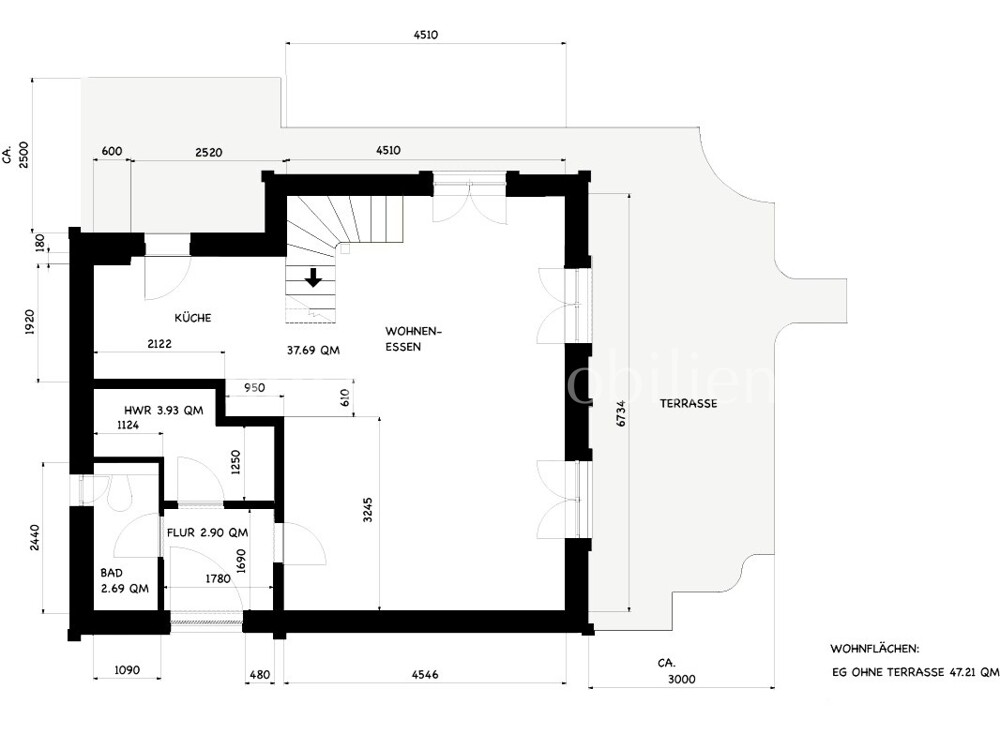 - Wohnfläche (mit anteilig 1/4 Terrasse) : ca. 99,5 qm